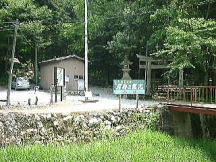 | 河内の集落へ行く途中です 水が透き通っています | 権現谷の行者橋 林道の両端は切り立った高い崖が続きます | 深い深い谷に沿って林道がくねくね走っています |