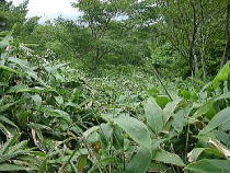 | 霊仙山山頂を望んでいます | ここまでで山頂に行くのをやめました あーしんど | まゆみなどのの低木に 熊笹が生茂っています |