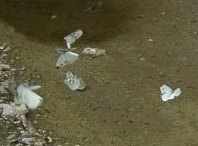 | うすばしろちょ もう疲れているようです 羽根がぎざぎざになっています 丸みがあるんですが | もんしろちょうがたくさん水を飲んでいました ミネラルの補給でしょうか | |